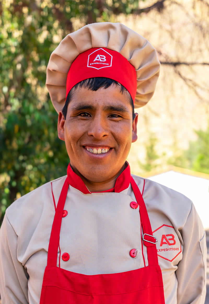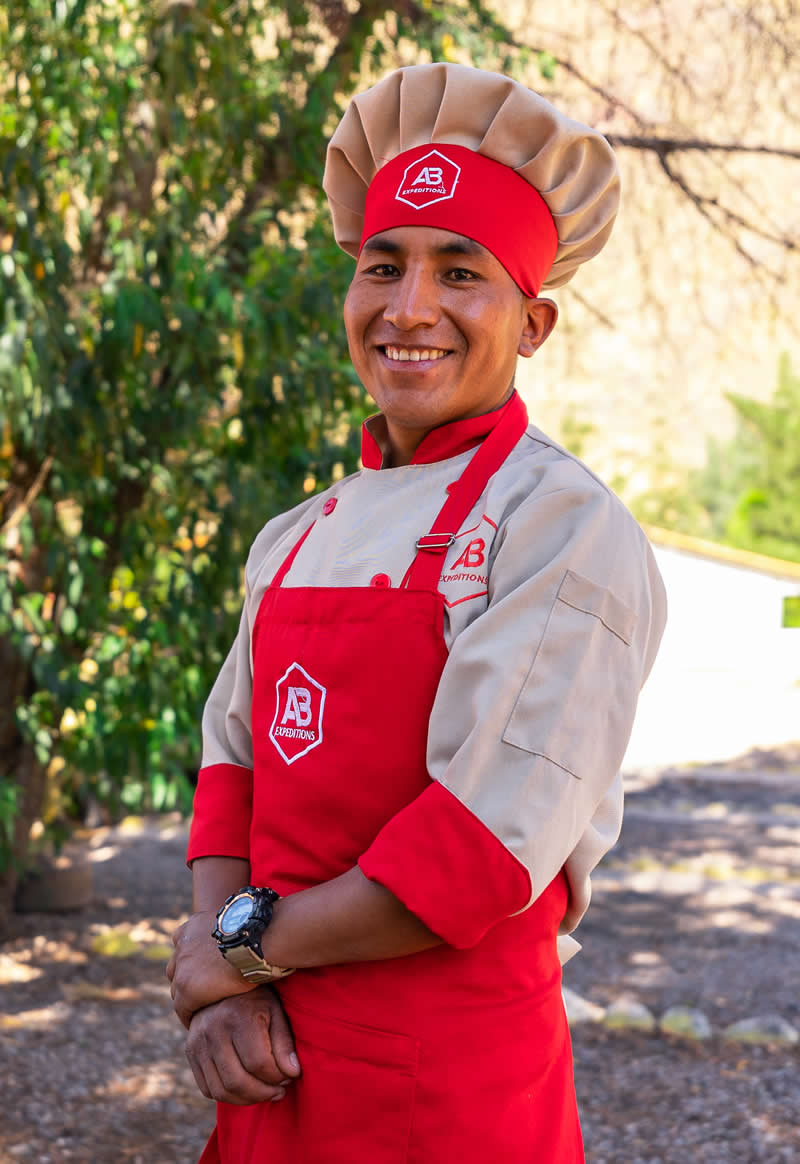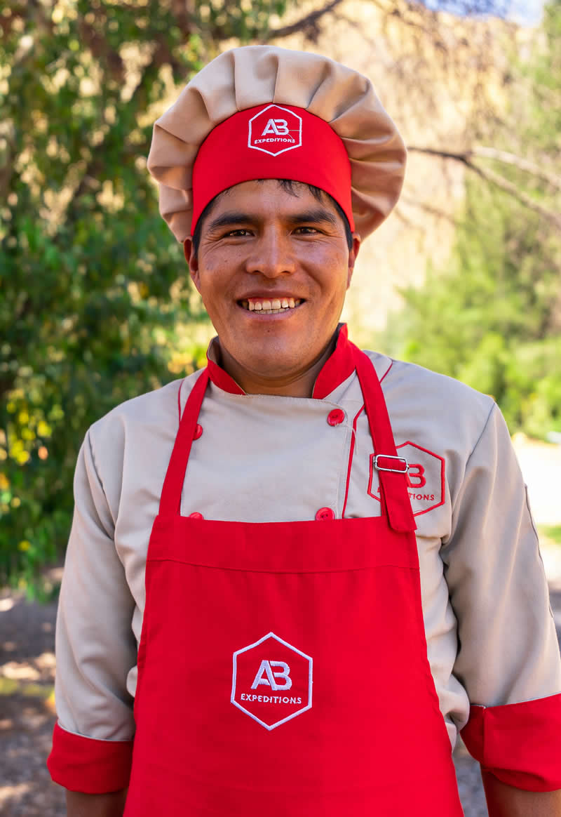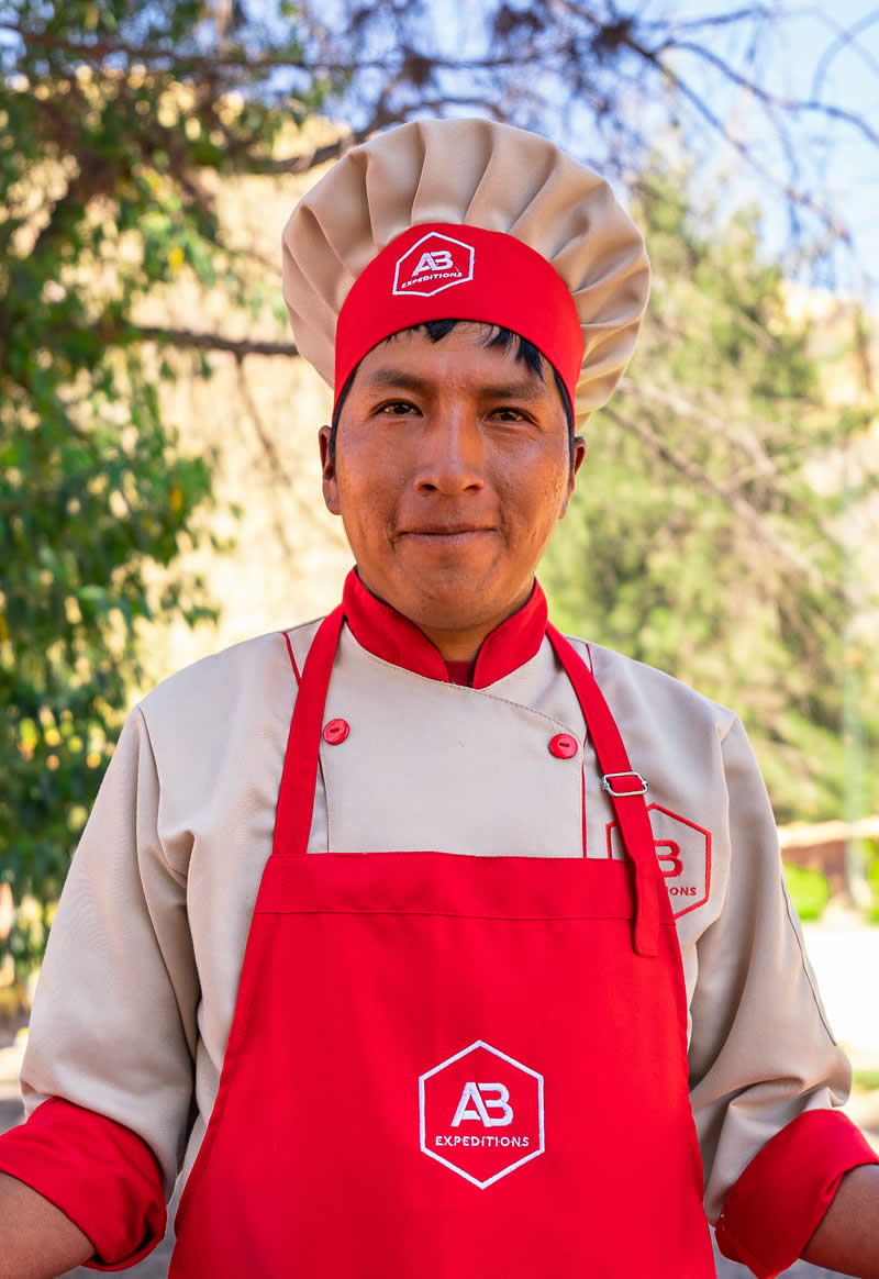 Estamos orgullosos de tener a Wilian en nuestro equipo de AB Expeditions. Es un apasionado de la cocina de la torreja de Quinoa que es una de nuestras comidas peruanas.
