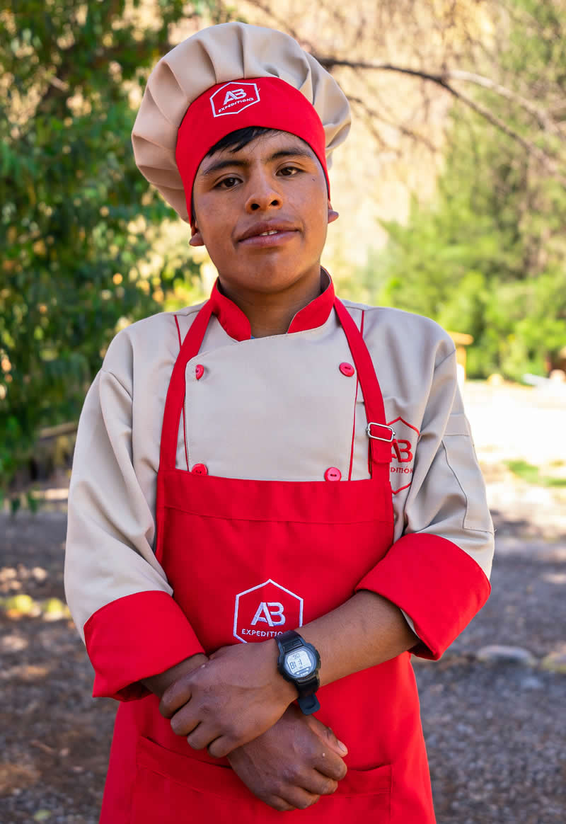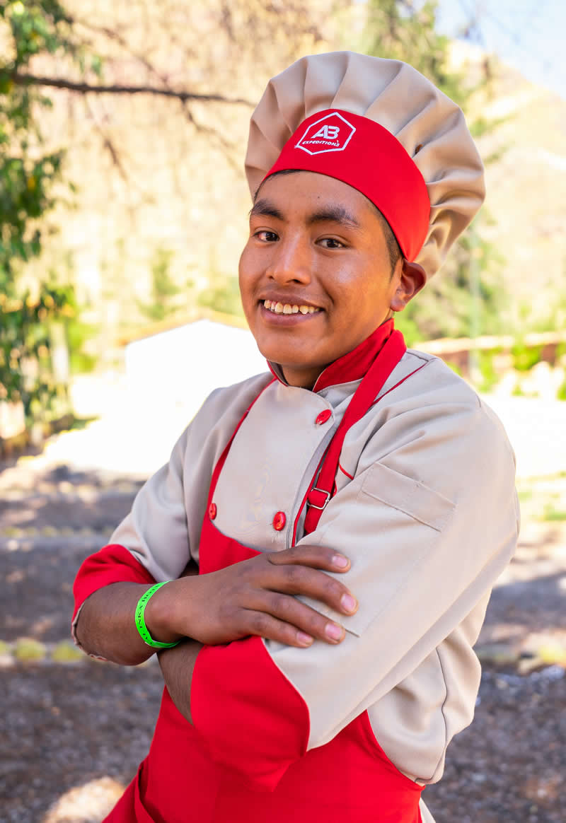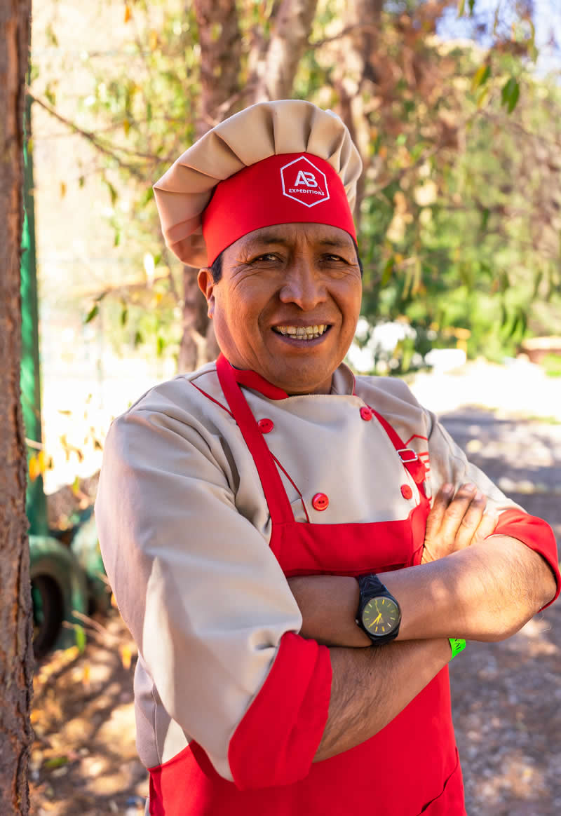 Nicanor es un maravilloso chef que tenemos en nuestra compañía. En las excursiones a la montaña del Arco Iris, a la montaña del Palcoyo y a los 7 lagos de Augangate, lo verás siempre sonriendo