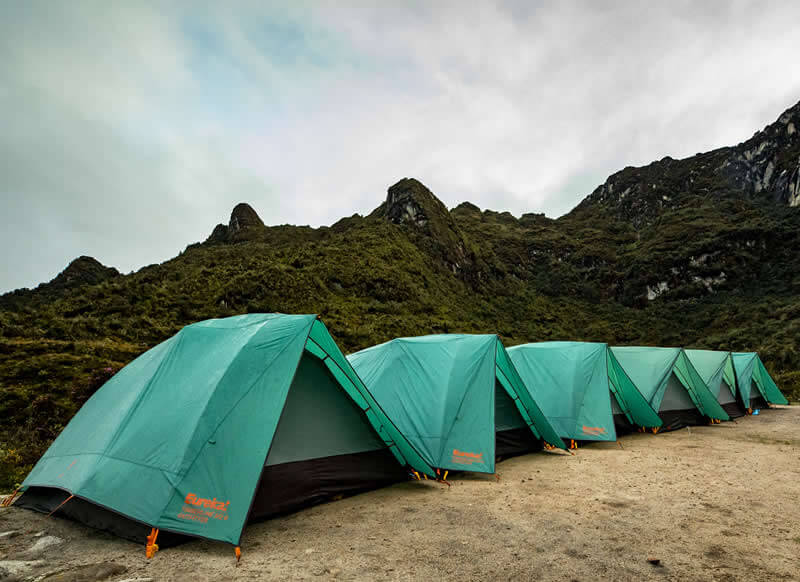 Today is a tough day because we have two passes to cross. After our breakfast, we hiked for about 4 hours until the dead woman passed. After being on the Inca Chiriasca pass. The hike to this pass will be easier but the steps make it harder. At the summit, we’ll witness the changing landscapes and capture photos of both valleys before descending to Pacaymayo for a delicious lunch. Next, we’ll ascend the Runku Racay Pass, stopping along the way to visit the Inca Site of Runku Raqay with detailed explanations from our guide. As we continue, we’ll observe a dramatic shift in landscape from the highlands to the rainforest. After reaching the Pass, we’ll descend for about an hour to the Sayacmarca Inca Site, where our guide will lead us in exploration. Finally, we’ll make our way to our campsite, Chaquicocha (3600m / 11800ft), known for its serene atmosphere and stunning views of the sunset over the distant mountains.