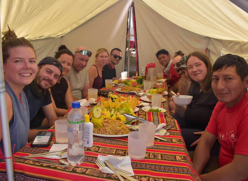 - All meals, including breakfast, lunch, dinner, and happy hours, are included in our 7-day Inca Trail hike, except for the last lunch.
